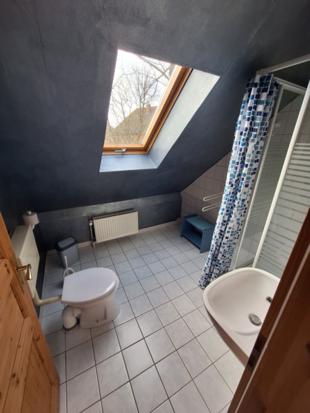 Von hier geht es weiter in das kleine Schlafzimmer mit anschließendem Duschbad.